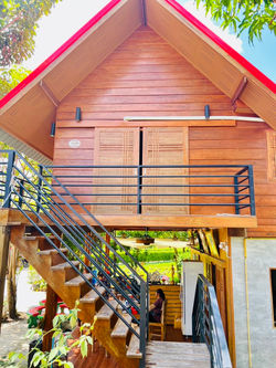 บ้านฝ้ายคำเป็นบ้านทรงไทยประยุกต์มีหลังคาทรงจั่ว และเราใช้สีขาวเพื่อให้บ้านฝ้ายคำมีจุดเด่นมากขึ้น..คุณลูกค้าสามารถนั่งภายนอก ระเบียงที่กว้างขวางและ ยังมองเห็นวิวภูเขา และเราจัดสวนเพื่อให้ได้บรรยากาศ รื่นรมย์
